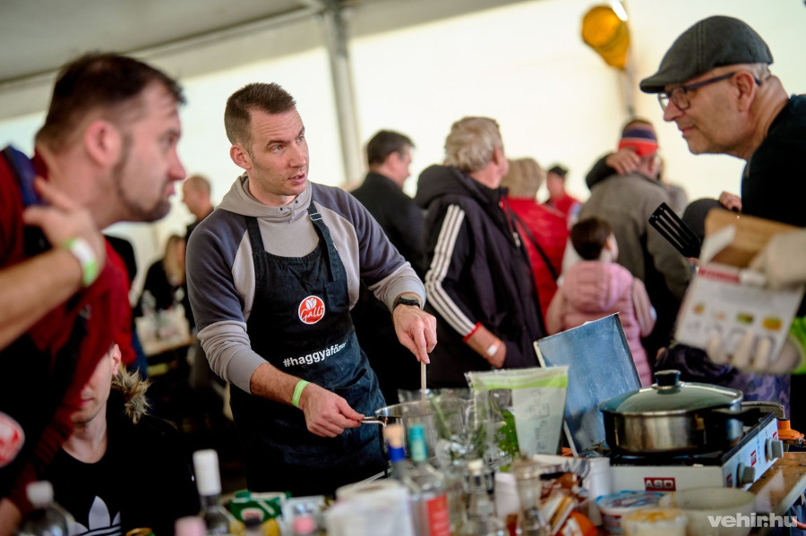 A közösségi házban tartott sajtótájékoztató után a nemesvámosi sportcsarnokban hivatalosan is megnyitották a gasztrofesztivált, ahol idén rekordszámú csapat jelentkezett a főzőversenyre, összesen harmincan indultak rajta, többek közt a már említett polgármesteri csapat is, de még Vácról is érkezett egy csapat.