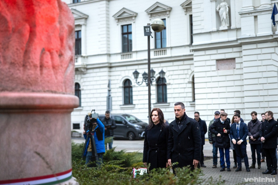 A kommunizmus áldozatainak lelki üdvéért Szabó János, a Veszprémi Főegyházmegye gazdasági helynöke mondott imádságot, majd a jelenlévők elhelyezték koszorúikat a Törvényszék falán található emléktáblánál.