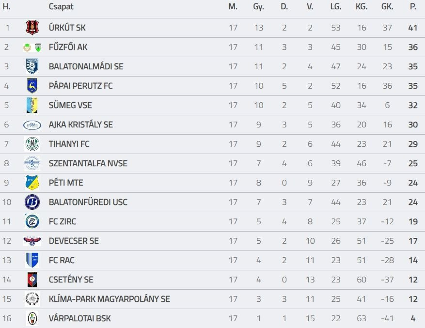 VEHIR.HU labdarúgó vármegyei élvonal, a 17. forduló eredményei: