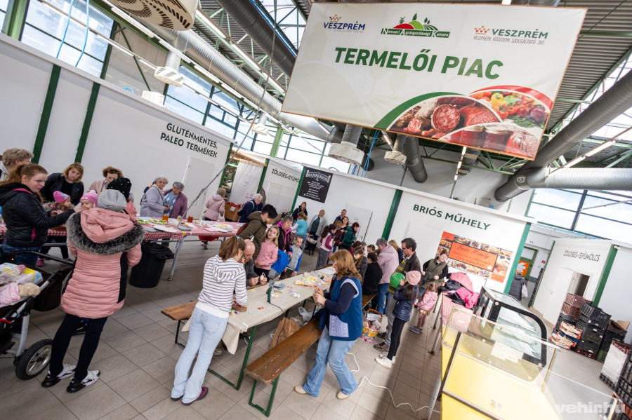 Nagy sikerrel szervezte meg a VKSZ Zrt. húsvétváró rendezvényét a veszprémi vásárcsarnokban nagycsütörtök délelőtt. A forgalmas piactéren állatsimogatóval, kézműves foglalkozásokkal és kóstolókkal is készültek a szervezők, amire már első alkalommal számos érdeklődő, elsősorban kisgyermekes családok látogattak ki. Képriportunkban megmutatjuk, milyen volt a hangulat.