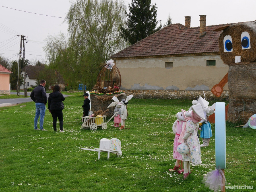 Mert bármilyen egyszerű dologról is legyen szó, egy karácsonyi, őszi, tavaszi vagy most épp húsvéti dekoráció elkészítése végül is közösséget teremt. Először csak egy pár ember alkotta magot, azoknak a körét, akik összegyűjtik a falu ezermesterétől a gipszkartont a tojásokhoz, majd megfestik őket. Akik kitömött nyúlbábokat készítenek és a gyerekek kinőtt ruhájával felöltöztetik őket, hogy úgy fessenek, mint Beatrix Potter híres mesehősei. Akik az elszáradt kis fát elszállítják a térre, letűzik és tojásokkal díszítik, akik felállítják a nyúl bábokat is, meg az óriás, szalmából készült kotlóst. Aztán ez a kör szépen szélesedik, ahogy egyre többen jönnek megcsodálni a mesebirodalmat, közben szóba elegyednek a szintén arra járókkal, ismeretséget kötnek vagy újítanak fel. Néhányukban talán még az a gondolat is megszületik, de jó lenne szintén alkotni, és páran nemcsak eljátszanak a gondolattal, hanem megvalósítják, és aztán belőlük lesznek a dekoráló, hagyományőrző csapat újabb tagjai.