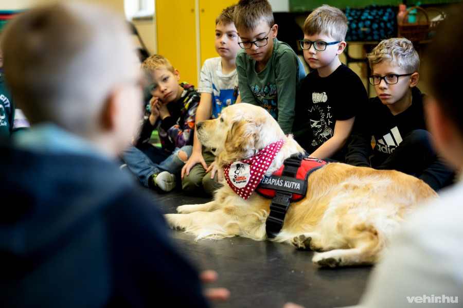 A Veszprémi Deák Ferenc Általános Iskolában egy tanóra keretében került sor foglalkozásra: terápiás kutyák segítségével csoportokban dolgoztak fel szövegeket, méghozzá a 3.a osztály. Ez is egy jó példa arra, miként lehet csökkenteni a tanulásból fakadó szorongást a gyermekekben. Ovádi Péter is meglátogatta az órát, s külön örült annak, hogy a Deák Iskola nyitott volt a kezdeményezésre.