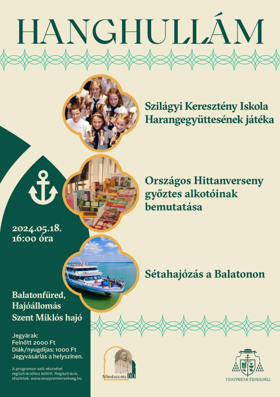 Az eseménysorozat májusban veszi kezdetét, először 18-án, szombaton 16 órakor indul útnak a balatonfüredi hajóállomásról, a Mindszenty 80 év ünnepi programsorozatának részeként, a Szent Miklós hajó. A sétaút során a veszprémi Szilágyi Erzsébet Keresztény Általános Iskola méltán híres harangegyüttesét hallhatják a vendégek, miközben a Veszprémi Érsekség által meghirdetett országos hittanverseny győztes alkotóival és alkotásaikkal ismerkedhetnek meg az érdeklődők.