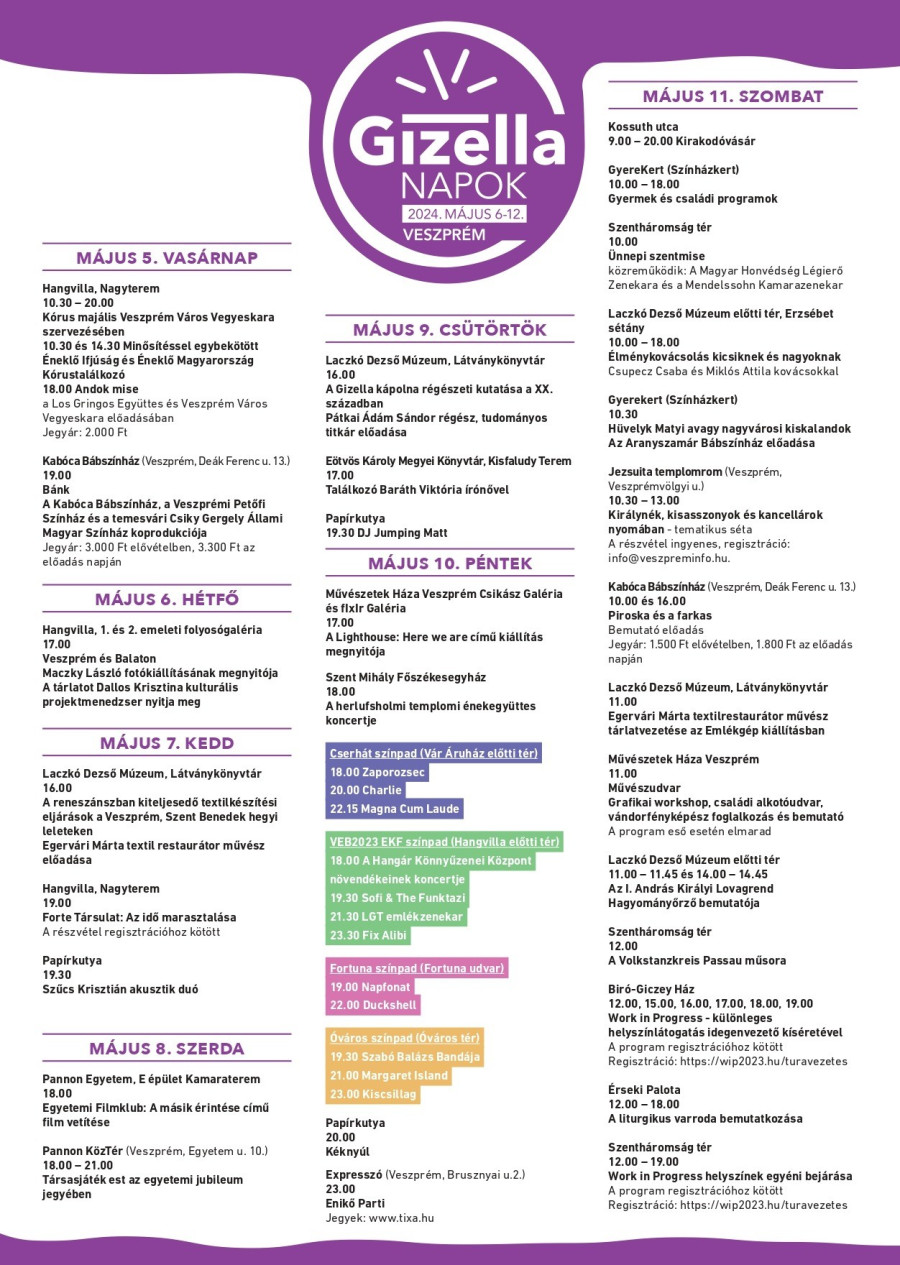 Veszprém kiemelt összművészeti fesztiválja tavaly ünnepelte három évtizedes jubileumát. A Veszprém-Balaton 2023 Európa Kulturális Fővárosa program keretében a város talán legnagyobb hagyományú kulturális eseménysorozata már 2022-ben, az EKF-re való felkészülés évében már szintet lépett, majd az Európa Kulturális Fővárosa cím viselésének évében és idén a korábbiaknál is sokrétűbb, gazdagabb programkínálattal jelenik meg a város kulturális vérkeringésében. A Gizella Napok nemcsak a helyi közösségek számára jelentős, az ország minden szegletéből vonzza a látogatókat, akik kíváncsiak Veszprém és régiója gazdag kulturális életének értékeire és sokszínűségére.