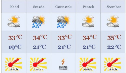 Az egész ország területére másodfokú hőségriasztást rendelt el az országos tiszti főorvos hétfőn. Paller Judit indoklása szerint hétfőtől a hétvégéig a napi középhőmérséklet az országban 25-27 Celsius-fok között valószínű, keddtől pedig több helyen – például a nagyvárosokban – ennél magasabb, 27 fok feletti átlaghőmérséklet várható több napon át.