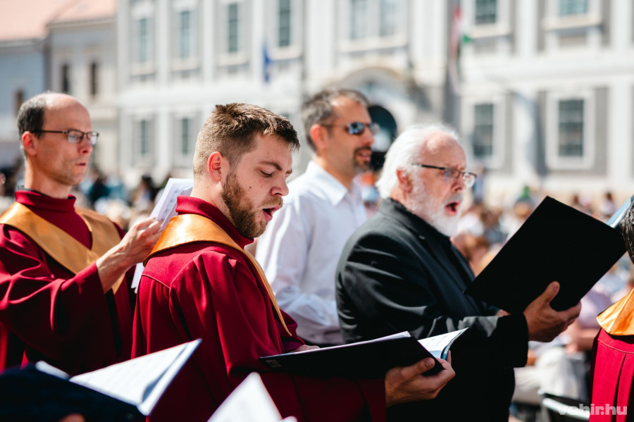 A zenei szolgálatot a főegyházmegyéből érkező kórusok mellett a Mendelssohn Kamarazenekar látta el, közreműködött a Magyar Honvédség Légierő Zenekarának fúvósai. Vezényelt Dankos Attila zeneigazgató, orgonaművész.
