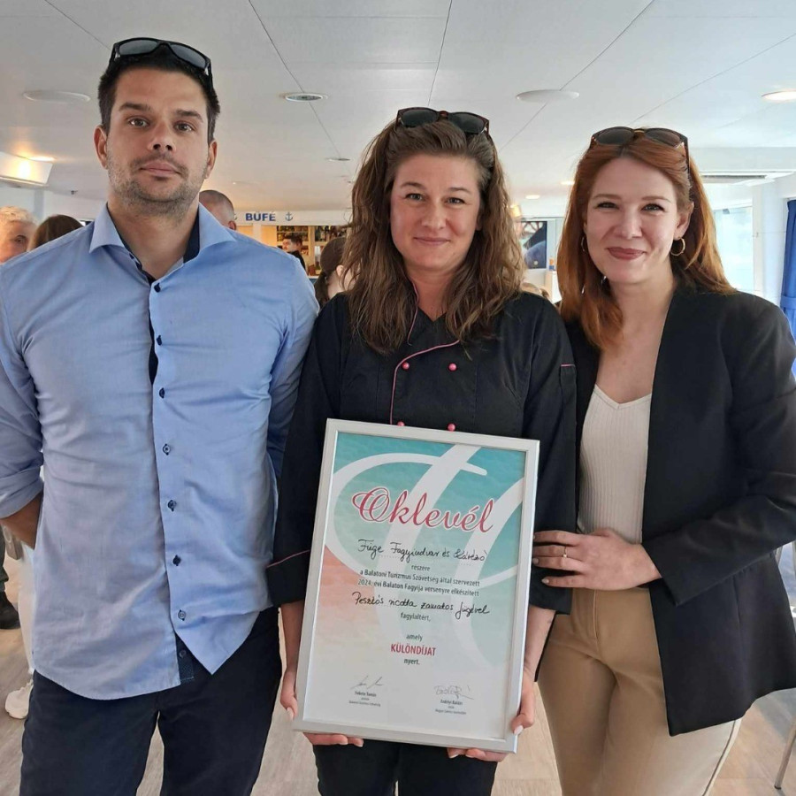 A különdíjasok között pedig ott volt a veszprémi Füge fagyiudvar is, akiknek a pstós, ricottás fügefagyiját díjazta a zsűri.