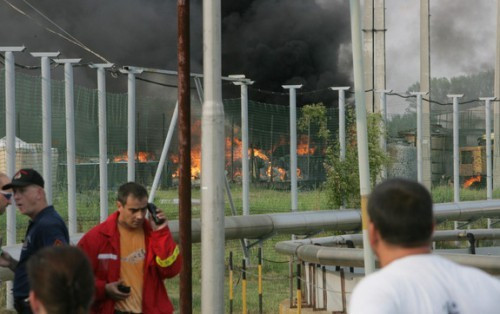 A Fűzfőgyártelepi veszélyes hulladékégető udvarán álló oldószeres hordók gyulladtak ki - a nagy hőség miatt-, azok idézték elő a robbanásszerű hangokat. A lakosság nincs közvetlen veszélyben. Úgy tudjuk, egy tűzoltó könnyebb égési sérüléseket szenvedett.