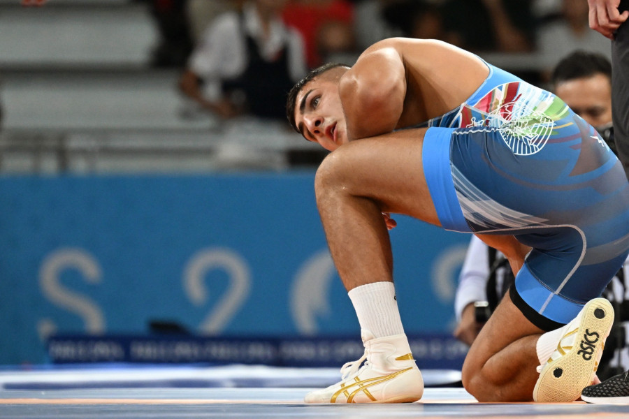 Losonczi Dávid a bolgár Szemen Novikov elleni mérkőzésén a férfi kötöttfogású birkózók 87 kilogrammos súlycsoportjának elődöntőjében a 2024-es párizsi nyári olimpián a párizsi Mars-mező Arénában 2024. augusztus 7-én. Losonczi Dávid kikapott az elődöntőben, így másnap a bronzéremért küzdhet. MTI/Illyés Tibor