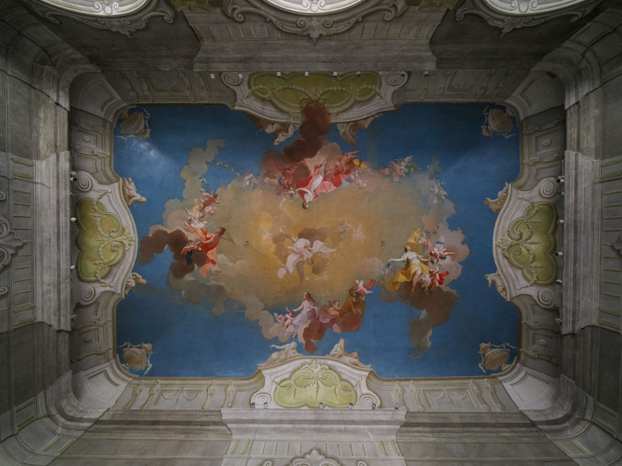 A mennyezetkép – amelyen a csillagjegyek és az időjárás szimbólumai is láthatók – ugyanis nemcsak dekoráció, több jelentésrétege is van, a festményt akár antik mitológiai utalásokba rejtett püspöki hitvallásként is lehet értelmezni. Az alkotásnak ugyanakkor nemcsak a jelentése okozott fejtörést, Cimbal festéstechnikája is váratlan feladat elé állította a restaurátorokat.