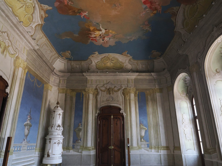 A világegyetemet körforgásban tartó kétarcú istenség, a négy évszakot szimbolizáló női és férfi alakok, a bolygók jeleit kezükben tartó puttók és egy titokzatos utalás a 18. században a palotát építtető veszprémi püspök, Koller Ignác születésnapjára – többek között ilyen részletek díszítik a veszprémi Érseki Palota dísztermének barokk mennyezeti festményét.