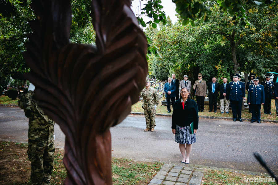 Ugyancsak pénteken tartották a Vámosi úti temetőben azt a katonai megemlékezést, ahol az 1941. április 12-én történt repülőgép-szerencsétlenség áldozatainak tiszteletére állított elékoszlopot avatták újjá. Hogy pontosan mi történt azon a tragikus napon, arról korábbi cikkünkben mi is részletesen írtunk. A mostani ünnepségen a katonai elöljárók mellett a várost Brányi Mária alpolgármester képviselte.