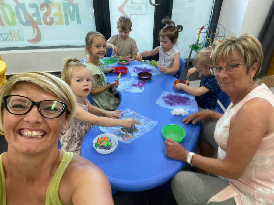 „Nem kell bonyolult feladatokra gondolni és végeredményében nem is az számít, hogy művészileg milyen rajz, festmény készül el például egy kézműves foglalkozáson. Amikor a kisgyerek megkapja egy mackó körvonalát, ő pedig színes lapokkal teleragaszthatja, akkor a finommotorikája máris fejlődik, de javul a figyelme, koncentrációja is, valamint oldódik a stressz. Én az anyukákat is arra biztatom, hogy otthon legalább heti egyszer játszanak így is a gyermekükkel, mert olyan hatással vannak ezek az előzetes foglalkozások, amitől később sokkal kreatívabbak lesznek a gyerekek.”