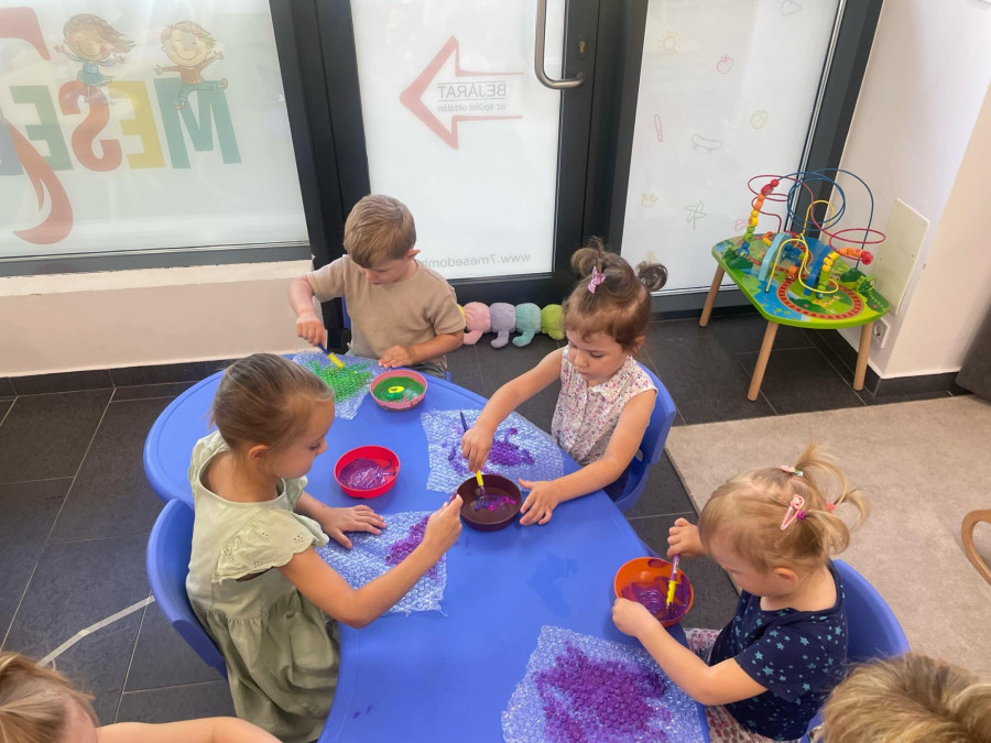 Erre pedig számos eszköz van a szülők kezében is, a 7 Mesedomb Játszóházban viszont Fruzsina tematikusan rendezte csokorba ezeket. Rendszeresen tart kézműves foglalkozásokat a finom motorika fejlesztése érdekében, mesenapokat az anyanyelvi szókincs gazdagítása miatt, tornafoglalkozásokat a mozgás fejlődése érdekében, vagy éppen kutyaterápiát a lelki egyensúly megtalálásáért.