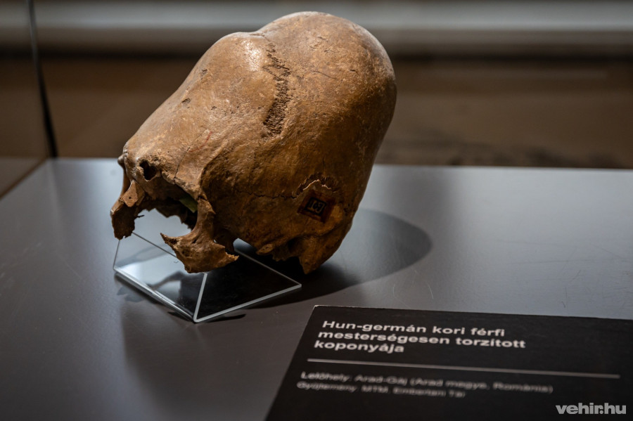 A kiállításon több eredeti hun koponyát is bemutatnak, ezekből jól rekonstruálható az ázsiai származásukat alátámasztó mongoloid arcszerkezet, de ami még érdekesebb és a kiállításon szintén megjelenik, az a mesterségesen deformált koponyák kulturális szokása. Ezt már egészen csecsemőkorban elkezdték azzal, hogy a kisgyermek fejét kendőkkel szorosan körbetekerték, így a koponya csak egy irányba tudott nőni, és így alakult ki a furcsa, csúcsos fejforma. Bernert Zsolt azt is elárulta, hogy sok esetben ez a beavatkozás a gyermek életébe került, mégis nagyobb rangot adott a családnak, ezért sokan a hunok közül így is vállalták a beavatkozást. A hunoktól egyébként átvették a germánok is Európában ezt a tradíciót, bizonyítva, hogy a népcsoportok között a kulturális szokások is keveredtek az első századokban.