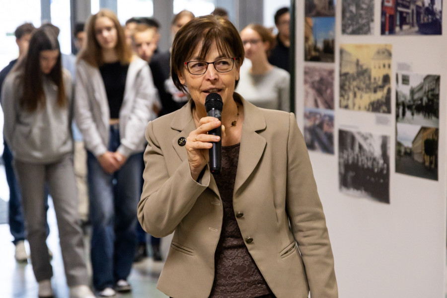 A kiállítást Márkusné Vörös Hajnalka, az egyesület elnöke nyitotta meg, aki rámutatott: a veszprémi zsidóság egykori élettere a mai iskolától néhány lépésnyire található, itt, a belvárosban éltek a prominens zsidó családok és itt működött az iskolájuk, valamint a két zsinagóga.