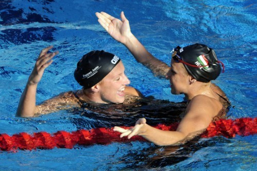 A pazar magyar siker után Gyurta Dániel következett 200 mellen, fő számában. Gyurta ötvennél második volt, száznál viszont már karcsapással első.