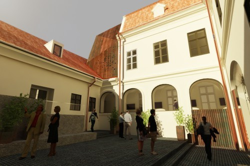 Az épület belső udvarának látványterve, melyet a Narmer Építészeti Stúdió készített