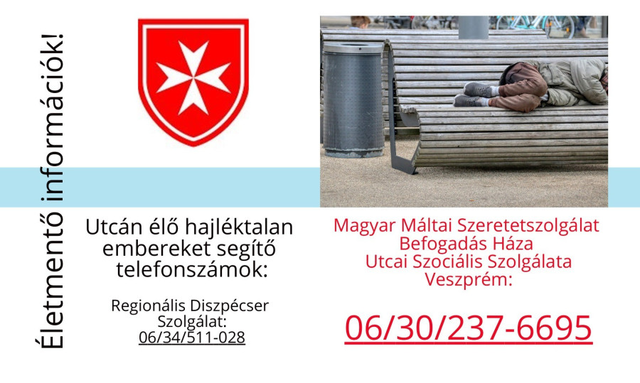 A civil szervezet korábban tett közzé felhívást, melyben arra kérik a lakosságot: jelezzék a regionális diszpécser szoglálat +36 34/511-028 vagy a Befogadás Háza +36 30/237-6695 telefonszámán, ha segítségre szoruló hajléktalan embereket látnak.