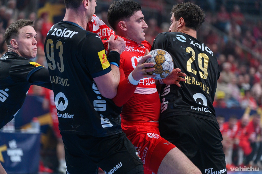 A vezetést viszont nem sikerült átvenni, Freihöfer hetesből és akcióból is hibátlanul tüzelt. Az előkészítésekben jeleskedő Gidsel öt perccel a szünet előtt, Koszortotov kisbüntetését kihasználva iratkozott fel a gólszerzők közé (26. perc: 13-15). A piros mezesek villámgyorsan egalizáltak, ám Anderrsson révén megint a németek léptek el. Marguc az első, Freihöfer pedig a harmadik hetesét is bevágta, Marguc egyenlíthetett volna az utolsó másodpercben, ám lövése a kapufán csattant (félidei állás: 16-17).
