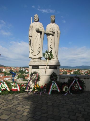 Az államalapító királyi pár szobrának megkoszorúzása után az egybegyűltek átvonultak a bazilikába, ahol részt vettek a Nagy Károly kanonok által celebrált szent misén. A kanonok szenvedélyes beszédében megidézte Szent István szellemét, és többszörösen felhívta a figyelmet a haza, az ország eladásának veszélyére. A szertartás során megszentelte az új kenyeret, illetve a Magyar Szent Korona üvegből készült másolatát. Az egyházi ünnepség végeztével a megjelentek fúvószenekar és hagyományőrzők kíséretében vonultak le a várból a Laczkó Dezső Múzeum udvarára, ahol megkezdődött a délutáni ünnepségsorozat.