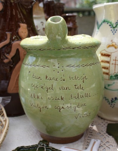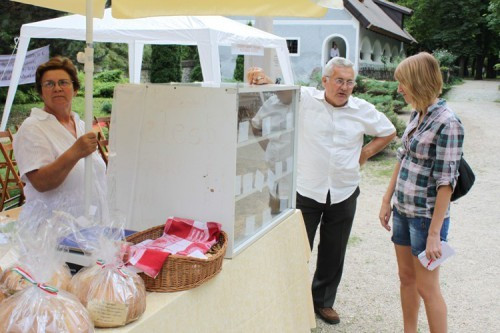 Farkas Balázsné szövő népi iparművész mosolyogva mutatta meg szőnyegeit, büszke volt rá, hogy ez még nem az ipari társadalom terméke. Szerinte ettől még a tapintása is más. Mellette szerényen üldögélt Kézdy Éva fazekas, kinek nemcsak edényei és tányérjai, de egyedi készítésű agyagfülbevalói is irigylésre méltók.