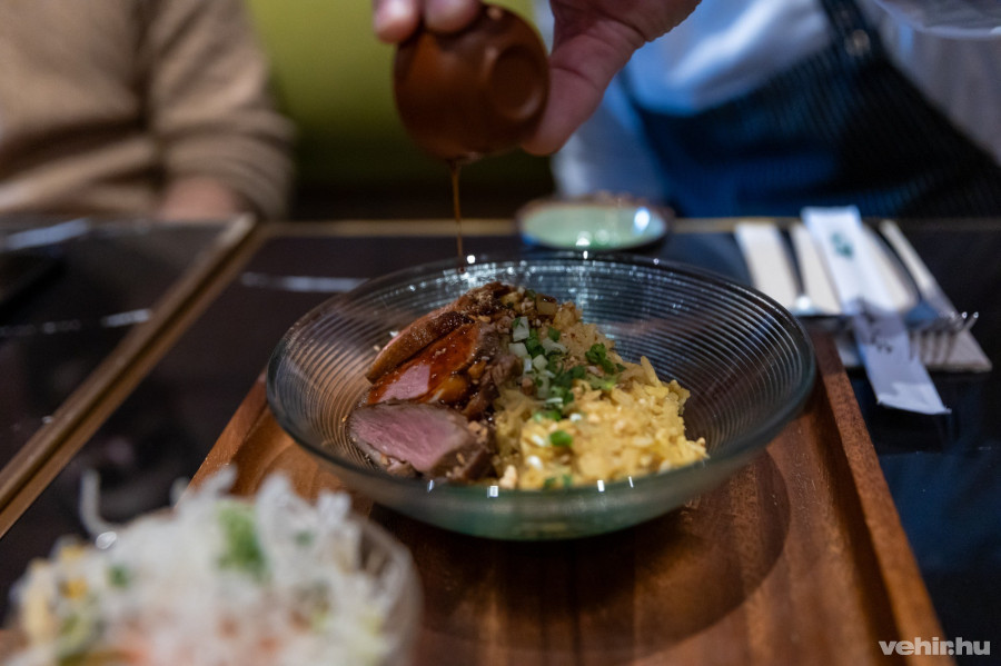 Mi egy autentikus ázsiai ételt, valamint a magyar és keleti konyha fúziójából létrehozott fogást próbáltunk ki az üvegtésztával és currys rizzsel tálalt pekingi kacsa és a tonkatsu malaccsászár udon carbonarával és bonito pehellyel elkészített formájában.