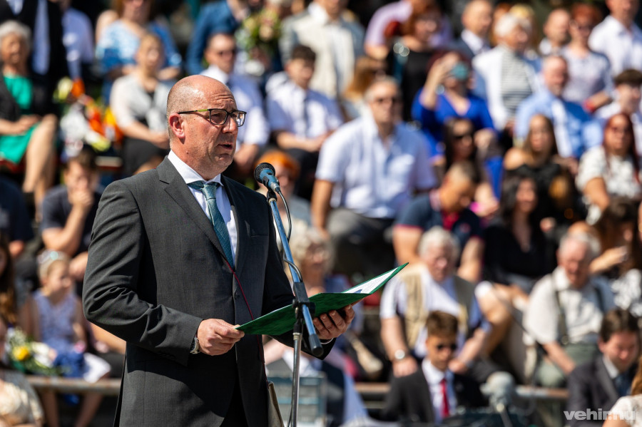 Szikrázó napsütés és kora nyárias meleg fogadta a ballagókat az Ipari Technikum sportpályáján szerda délelőtt, hogy ünnepélyes keretek között vegyenek búcsút a gondtalan diákévektől, mielőtt hétfőn nekigyürkőznek az érettségi vizsgáknak.