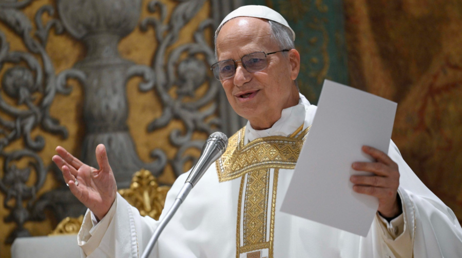XIV. Leó hangoztatta, hogy a pápaság számára, amiként mindenki más számára is „erő feletti igának” számít, és e misszióban, valamint a felelősségben a bíborosok és a hívek támogatására számít. Egyszerre „szomorú és örömteli” pillanatról beszélt, hiszen megválasztása Ferenc pápa halálát követte.