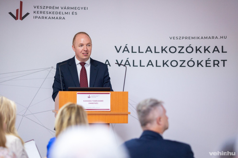 Az ünnepség díszvendége dr. Pálmai Gergely, a Kulturális és Innovációs Minisztérium helyettes államtitkára volt, aki „Pillanatkép a duális képzésről” címmel tartott előadást. Először nemzetközi kitekintést adott az OECD legfrissebb adatai alapján, majd részletesen bemutatta a magyar szakképzési rendszer helyzetét, végül Veszprém vármegye vonatkozó adatait és eredményeit is elemezte.