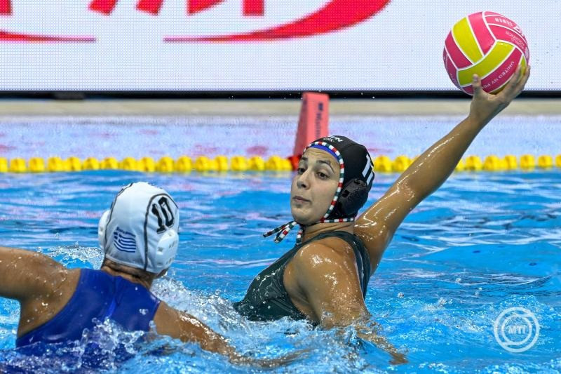A második negyed magyar góllal indult, a 19 éves Varró ismét centerből, ezúttal egy remek csavarral talált be, a túloldalon pedig Neszmély a görögök második büntetőjét is hárította. Elöl ugyanakkor a negyedik fór is kimaradt, a görögök pedig egy gyors lefordulás után újra előnybe kerültek. Az ellenfél létszámfölényből növelte a különbséget, Cseh Sándor pedig időt kért. Ez nem igazán hatott, továbbra is pontatlanok voltak a lövések, a túloldalon Foteini Triha pedig már a harmadik gólját szerezte (2-5). A rossz sorozatot a tizedik világbajnokságán szereplő - ezzel a nők között rekorder - Keszthelyi Rita törte meg büntetőből. Varró centerből fórt harcolt ki, Garda Krisztina pedig értékesítette is a helyzetet (4-5).