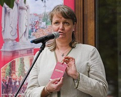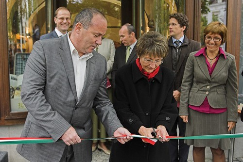 Dr. Lőrincz Katalin a Veszprémi Turisztikai Közhasznú Nonprofit Kft ügyvezetője, és Temesvári Balázs a Közép-dunántúli Regionális Fejlesztési Tanács elnöke az iroda megnyitásánál jelentőségéről és technikai információkról beszélt.