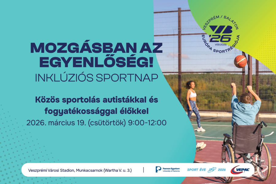 „Mozgásban az egyenlőség – Inkluzív Sportnap” elnevezéssel valósít meg egy izgalmasnak ígérkező eseményt a VEDAC a Veszprém-Balaton Európa Sportrégiója 2026 program keretében március 19-én, csütörtökön 9.00 és 12.00 között a Veszprémi Városi Stadion munkacsarnokában.