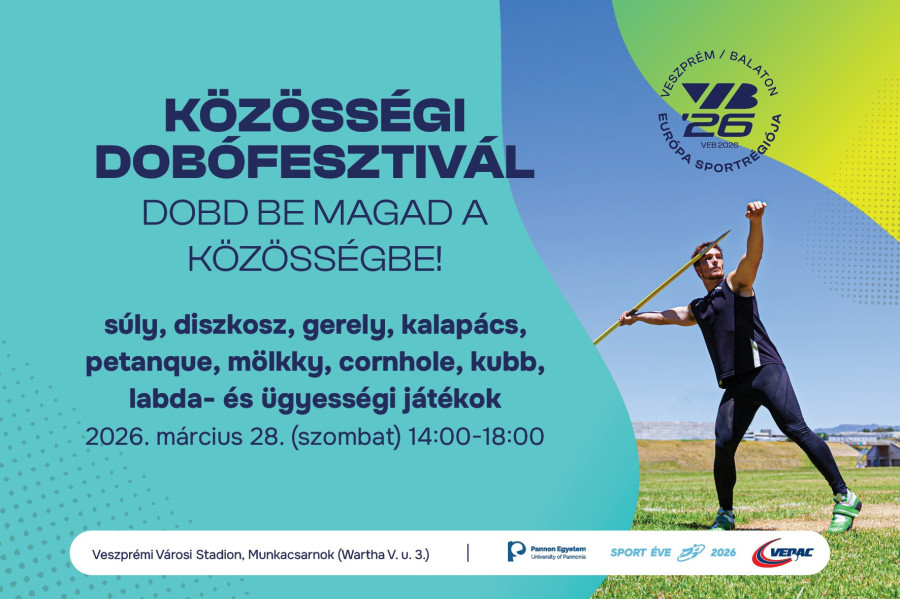 Szombat délután az országos bajnoksággal párhuzamosan, 14.00 és 18.00 között mindenki számára nyitott sportos aktivitásokkal várják az érdeklődőket a munkacsarnokban. A Közösségi Dobófesztivál programjában a dobóatlétika ismert versenyszámai mellett számos ügyességi játék szerepel, mint a petanque, a mölkky, a cornhole, a kubb és számos más aktivitás, amiért érdemes kilátogatni a stadionba. A program a Veszprém-Balaton Európa Sportrégiója 2026 programsorozat részeként kínál sportolási lehetőséget a lakosság számára.