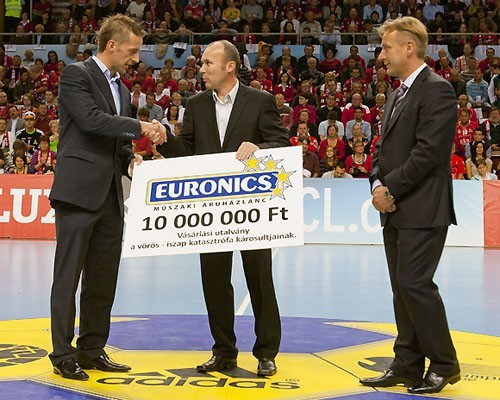 A kezdő sípszót megelőzően a veszprémi együttest is támogató Euronics-Vöröskő Kft. tulajdonosai, Fazekas Péter és Fazekas Zsolt tízmillió forint értékű vásárlási utalványt adták át Porga Gyula polgármester "közvetítésével" a vörösiszap-katasztrófa károsultjainak.