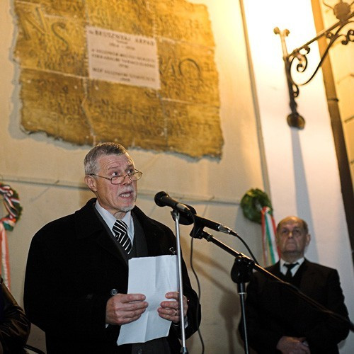 Az egykori szomorú vasárnapi napra, november 4-re, a szovjet csapatok fellépésére emlékezett a családi, személyes emlékek felidézése mellett a keresztény értelmiségiek nevében dr. Udvarhelyi Olivér.