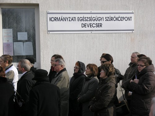 A köszöntők után a szónokok nemzeti színű szalag átvágásával nyitották meg az érdeklődők előtt a szűrőközpontot.